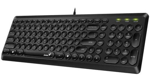 El teclado con cable de diseño retro con botones redondos está diseñado para proporcionar al usuario la máxima comodidad en el trabajo diario. Las teclas silenciosas y de bajo perfil brindan una escritura eficiente y cómoda. La conexión al ordenador se realiza a través de un puerto USB .Teclado Genius Slimstar Q200 posee tipeo rápido y silencioso es ideal para todos los tipos de usuarios que buscan un teclado confiable, duradero y liviano.
